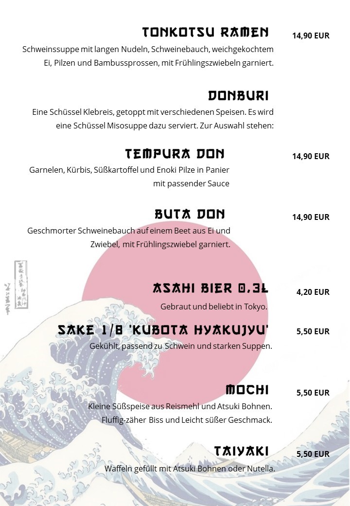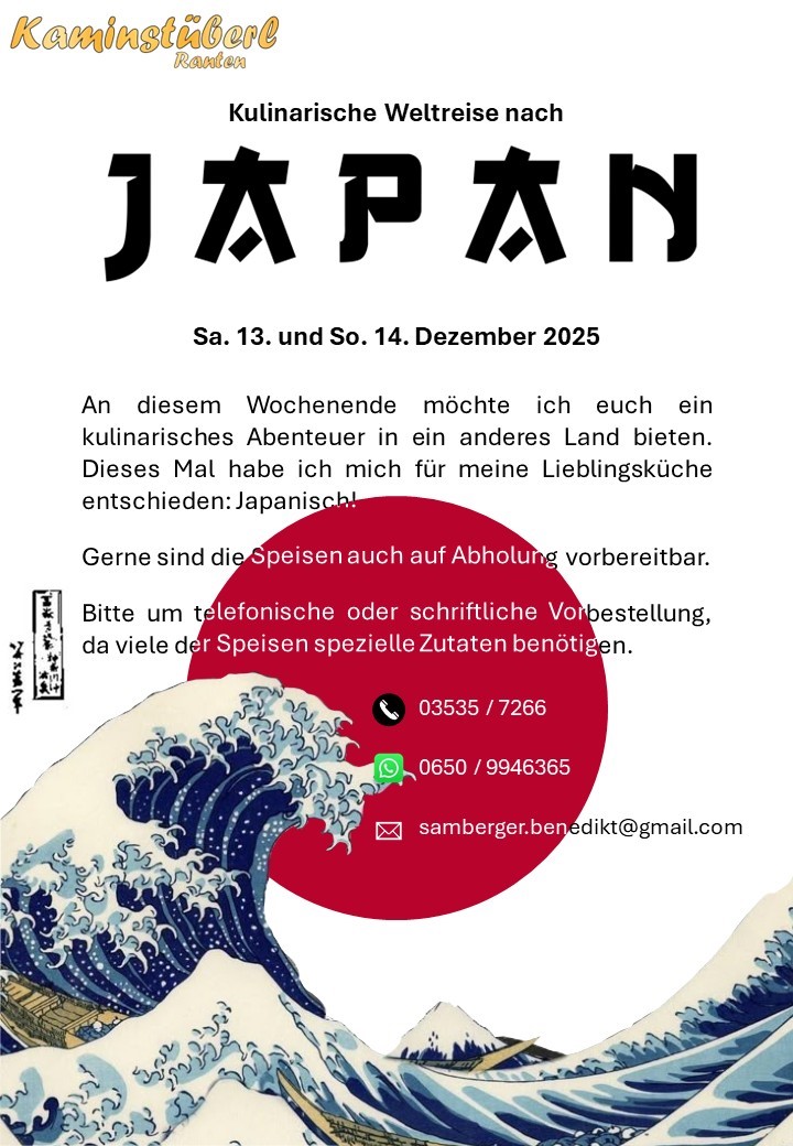 Das Wochenende 13.12. und 14.12.2025 bietet das Kaminstüberl eine kulinarische Weltreise nach Japan.